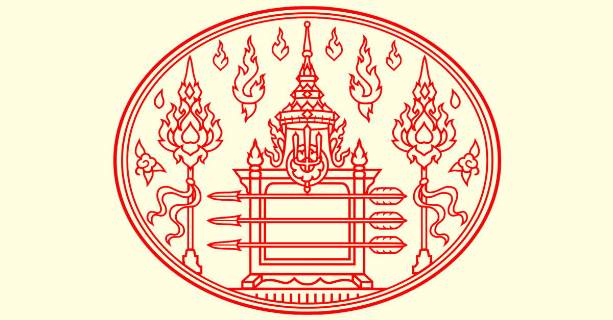 เป็นรูปพระแสงศร ๓ องค์ คือ พระแสงศรพรหมมาสตร์ พระแสงศร ประลัยวาต และพระแสงศรอัคนีวาต บนราวพาดพระแสง เหนือขึ้นไปเป็น ดวงตรามหาจักรีบรมราชวงศ์ ภายใต้ พระมหาพิชัยมงกุฎ ด้านซ้ายและขวา ตั้งบังแทรก มีลายกนกแทรกอยู่ บนพื้น ตอนบนของดวงตรา พระแสงศร ๓ องค์ นี้เป็นพระราชสัญลักษณ์ของพระบรม นามาภิไธย "ประชาธิปกศักดิเดชน์" "เดชน์" แปลว่า ลูกศร